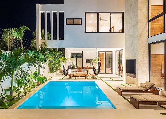 La villa se encuentra a unos 10 minutos en coche del Pirámide del Pensamiento Positivo. Los huéspedes pueden disfrutar de la proximidad a lugares de interés natural como el Cenote Escondido, situado a unos 3 km. Esta villa se encuentra a unos 15 minutos en coche de la Zona Arqueológica de Tulum.